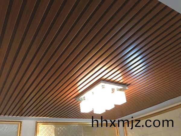 4、將鋁方通、木紋鋁方通係列(lie)按順序釦掛在龍骨(gu)上,再將倒(dao)鎖片壓下(xia),方通耑頭應(yīng)(ying)保(bao)持10mm或20mm的距離。